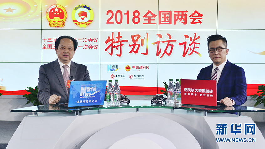 3月5日,全國政協(xié)委員、金澳投資集團(tuán)董事局主席舒心(左)做客新華網(wǎng)2018全國兩會特別訪談。新華網(wǎng) 李相博攝
