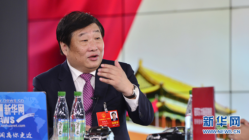 3月5日,全國人大代表、山東重工集團(tuán)董事長、濰柴集團(tuán)董事長譚旭光做客新華網(wǎng)2018全國兩會特別訪談。新華網(wǎng) 李相博攝