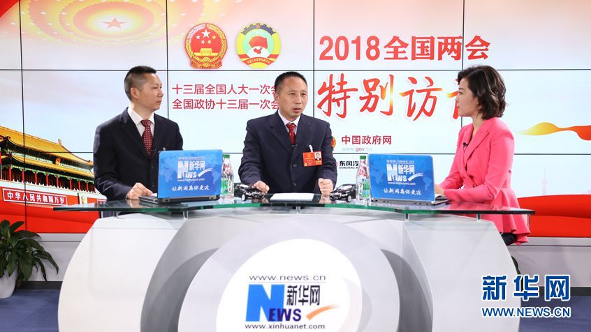 3月5日,神龍汽車有限公司武漢工廠制造一部沖焊分廠鈑金工楊祉剛(左)做客新華網(wǎng)2018全國(guó)兩會(huì)特別訪談。新華網(wǎng) 張斌/攝