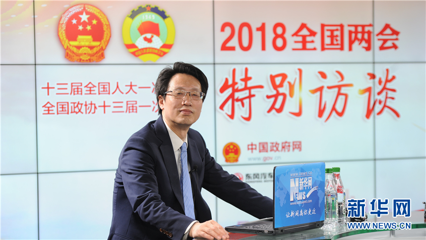 圖為,中國宏觀經(jīng)濟研究院常務(wù)副院長王昌林做客新華網(wǎng)2018全國兩會特別訪談“新跨越兩會專家講” 新華網(wǎng) 張斌攝?