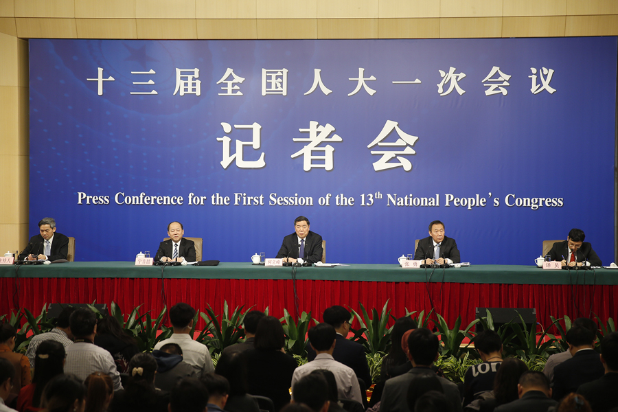 十三屆全國人大一次會議新聞中心3月6日上午10時(shí)在梅地亞中心多功能廳舉行記者會,邀請國家發(fā)展和改革委員會主任何立峰、副主任張勇、副主任寧吉喆就“創(chuàng)新和完善宏觀調(diào)控,推動高質(zhì)量發(fā)展”相關(guān)問題回答中外記者提問。圖為記者會現(xiàn)場。 新華網(wǎng)/中國政府網(wǎng) 陳杰 攝