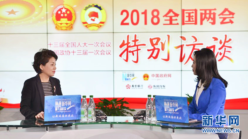 3月7日,全國政協(xié)委員、民盟中央常委、民盟吉林省委主委、吉林省旅游發(fā)展委員會主任楊安娣(左)做客新華網(wǎng)2018全國兩會特別訪談。新華網(wǎng) 李相博攝