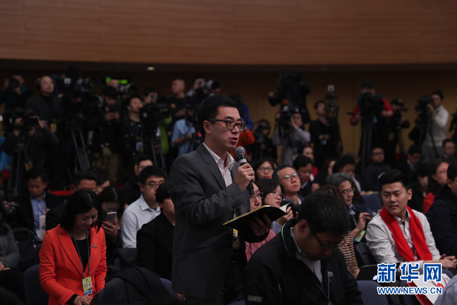 十三屆全國人大一次會議新聞中心于3月7日上午在梅地亞中心多功能廳舉行記者會,邀請財政部部長肖捷,副部長史耀斌、胡靜林就“財稅改革和財政工作”相關(guān)問題回答中外記者提問。圖為人民日報記者提問。新華網(wǎng)/中國政府網(wǎng) 陳杰攝