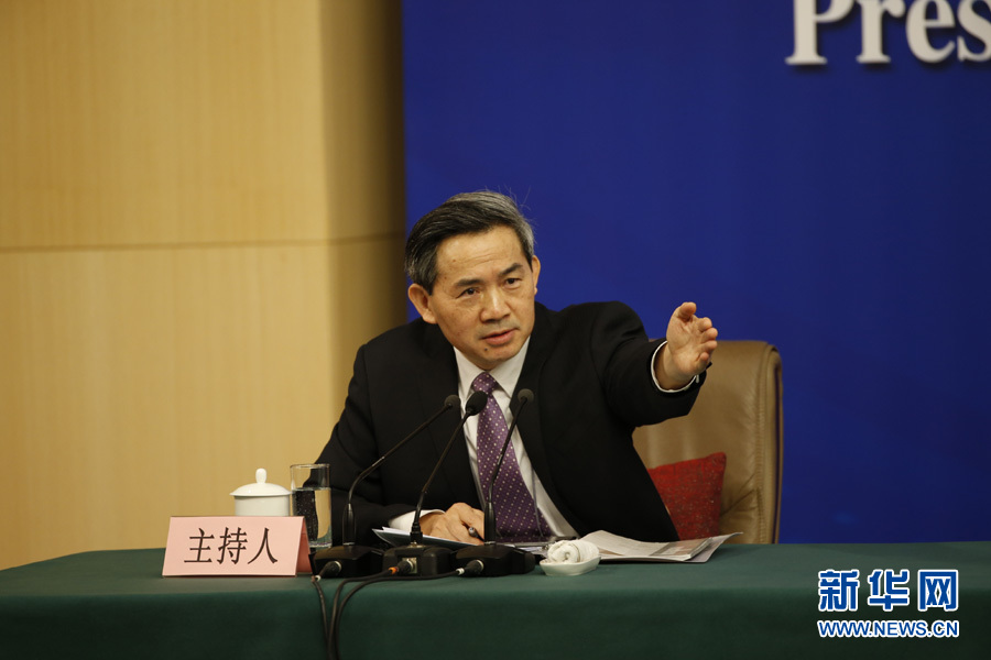 十三屆全國(guó)人大一次會(huì)議新聞中心于3月7日上午在梅地亞中心多功能廳舉行記者會(huì),邀請(qǐng)財(cái)政部部長(zhǎng)肖捷,副部長(zhǎng)史耀斌、胡靜林就“財(cái)稅改革和財(cái)政工作”相關(guān)問(wèn)題回答中外記者提問(wèn)。圖為記者會(huì)主持人何紹仁。新華網(wǎng)/中國(guó)政府網(wǎng) 陳杰 攝