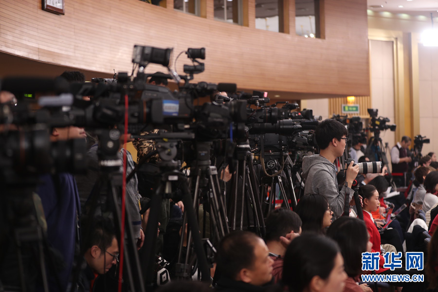 十三屆全國人大一次會議新聞中心于3月7日上午在梅地亞中心多功能廳舉行記者會,邀請財(cái)政部部長肖捷,副部長史耀斌、胡靜林就“財(cái)稅改革和財(cái)政工作”相關(guān)問題回答中外記者提問。圖為記者會現(xiàn)場。新華網(wǎng)/中國政府網(wǎng) 陳杰 攝