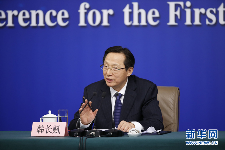 十三屆全國(guó)人大一次會(huì)議新聞中心于3月7日在梅地亞中心多功能廳舉行記者會(huì),邀請(qǐng)農(nóng)業(yè)部部長(zhǎng)韓長(zhǎng)賦,農(nóng)業(yè)部新聞發(fā)言人、辦公廳主任潘顯政就“實(shí)施鄉(xiāng)村振興戰(zhàn)略 推動(dòng)農(nóng)業(yè)轉(zhuǎn)型升級(jí)”的相關(guān)問(wèn)題回答中外記者的提問(wèn)。圖為韓長(zhǎng)賦回答記者提問(wèn)。新華網(wǎng)/中國(guó)政府網(wǎng)翟子赫攝