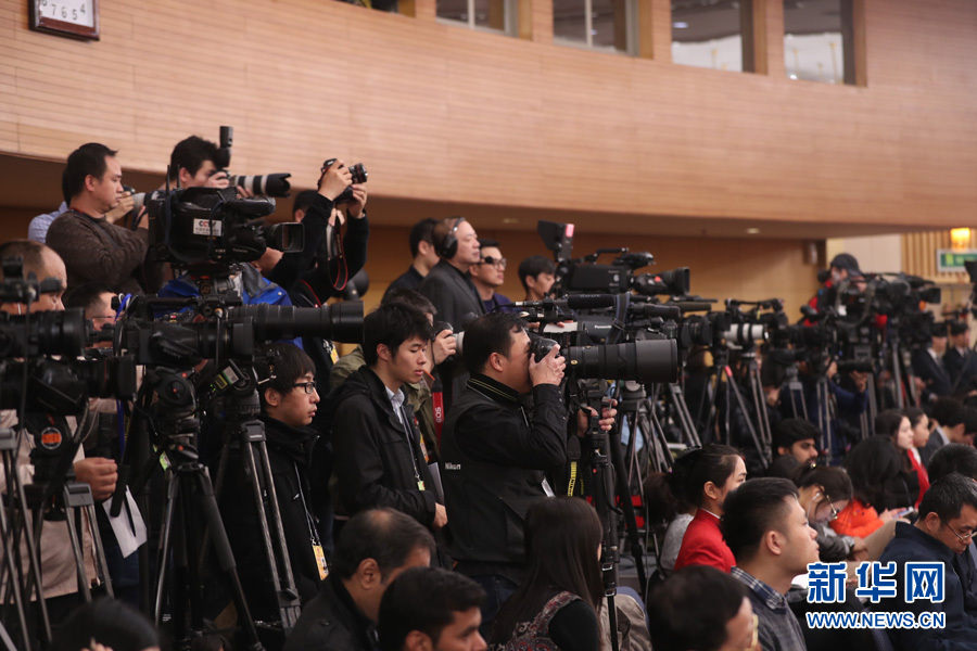 十三屆全國人大一次會議新聞中心于3月7日在梅地亞中心多功能廳舉行記者會,邀請農(nóng)業(yè)部部長韓長賦,農(nóng)業(yè)部新聞發(fā)言人、辦公廳主任潘顯政就“實施鄉(xiāng)村振興戰(zhàn)略 推動農(nóng)業(yè)轉(zhuǎn)型升級”的相關(guān)問題回答中外記者的提問。圖為記者在現(xiàn)場拍攝。新華網(wǎng)/中國政府網(wǎng) 陳杰 攝