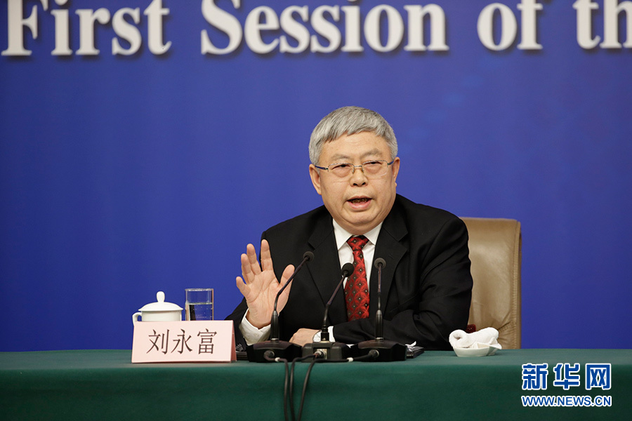 十三屆全國人大一次會議新聞中心于3月7日在梅地亞中心多功能廳舉行記者會,邀請國務院扶貧辦主任劉永富就“打好精準脫貧攻堅戰(zhàn)”的相關問題回答中外記者的提問。圖為劉永富回答記者提問。新華網(wǎng)/中國政府網(wǎng) 陳杰 攝
