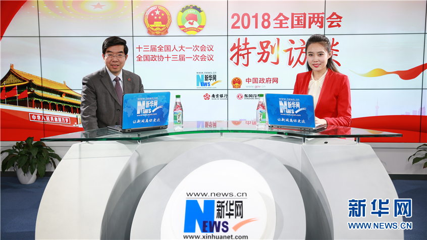 3月8日,全國(guó)政協(xié)委員、民進(jìn)中央副主席、上海市政協(xié)副主席、上海交通大學(xué)副校長(zhǎng)黃震(左)做客新華網(wǎng)2018全國(guó)兩會(huì)特別訪談。新華網(wǎng) 楊锘攝