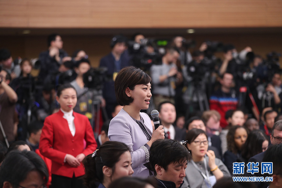 十三屆全國人大一次會議新聞中心于3月8日上午10時在梅地亞中心多功能廳舉行記者會,邀請外交部部長王毅就“中國外交政策和對外關(guān)系”回答中外記者提問。圖為中央電視臺記者提問。新華網(wǎng)/中國政府網(wǎng)陳杰 攝