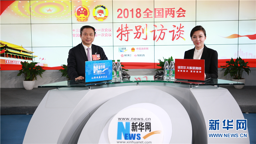 3月9日,全國人大代表,全國工商聯(lián)執(zhí)委、浙江省工商聯(lián)副主席、天能集團(tuán)董事長張?zhí)烊危ㄗ螅┳隹托氯A網(wǎng)2018全國兩會特別訪談。新華網(wǎng) 楊锘攝