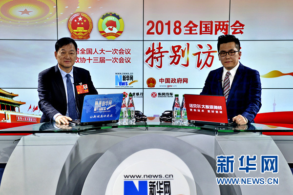 全國人大代表、牧原食品股份有限公司董事長秦英林做客新華網(wǎng)2018全國兩會特別訪談 新華網(wǎng) 李相博攝
