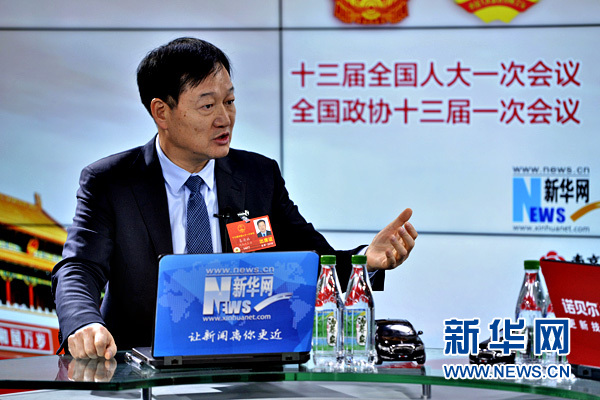 全國人大代表、牧原食品股份有限公司董事長秦英林做客新華網(wǎng)2018全國兩會特別訪談 新華網(wǎng) 李相博攝