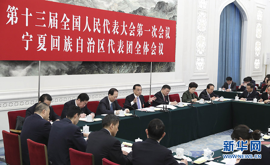 3月10日,中共中央政治局常委、國(guó)務(wù)院總理李克強(qiáng)參加十三屆全國(guó)人大一次會(huì)議寧夏代表團(tuán)的審議。 新華社記者 丁林 攝