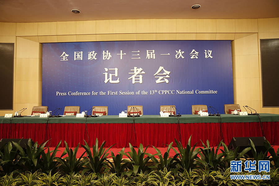 3月10日8時(shí)45分,全國政協(xié)十三屆一次會(huì)議將在梅地亞中心多功能廳舉行記者會(huì),邀請(qǐng)5位全國政協(xié)委員就“提高保障和改善民生水平”回答記者提問。圖為記者會(huì)現(xiàn)場(chǎng)。新華網(wǎng)/中國政府網(wǎng) 陳杰 攝