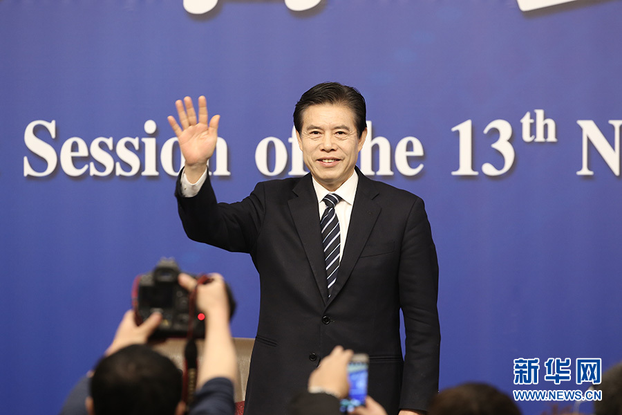 十三屆全國(guó)人大一次會(huì)議新聞中心3月11日10時(shí)在梅地亞中心多功能廳舉行記者會(huì),邀請(qǐng)商務(wù)部部長(zhǎng)鐘山、副部長(zhǎng)兼國(guó)際貿(mào)易談判副代表王受文、副部長(zhǎng)錢(qián)克明就“推動(dòng)形成全面開(kāi)放新格局 推動(dòng)商務(wù)事業(yè)高質(zhì)量發(fā)展”相關(guān)問(wèn)題回答中外記者提問(wèn)。圖為商務(wù)部部長(zhǎng)鐘山。新華網(wǎng)/中國(guó)政府網(wǎng)?陳杰?攝?