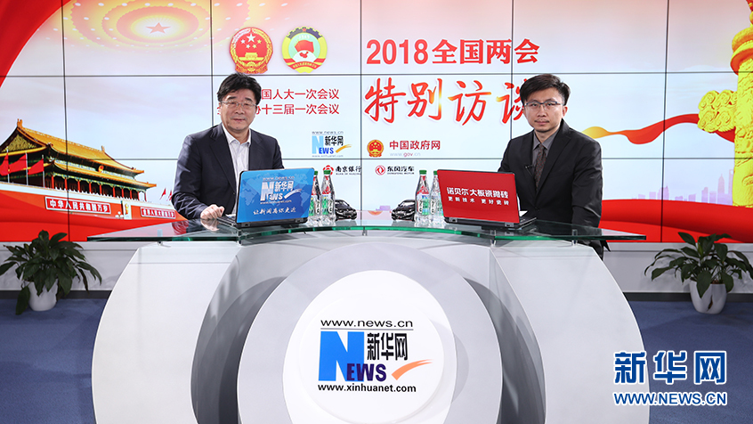 3月11日,全國政協(xié)委員、中國人民大學(xué)校長劉偉(左)做客新華網(wǎng)2018全國兩會(huì)特別訪談。新華網(wǎng)?郭小天攝