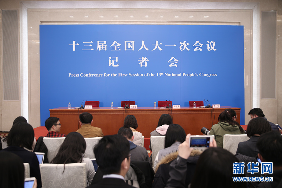3月11日,十三屆全國人大一次會議新聞中心在人民大會堂一樓新聞發(fā)布廳舉行記者會,邀請十三屆全國人大一次會議秘書處法案組組長、全國人大常委會法工委主任沈春耀,法案組副組長、全國人大常委會法工委副主任鄭淑娜就“憲法修正案”相關(guān)問題回答中外記者提問。圖為記者會開始前。新華網(wǎng)/中國政府網(wǎng) 陳杰 攝