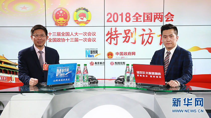 全國(guó)政協(xié)委員、華堅(jiān)集團(tuán)董事長(zhǎng)張華榮做客新華網(wǎng)2018全國(guó)兩會(huì)特別訪(fǎng)談。新華網(wǎng) 楊锘攝