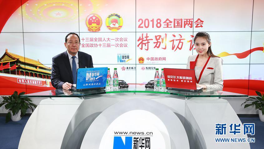 圖為全國人大代表,云南省迪慶藏族自治州委副書記、州長齊建新(左)做客新華網(wǎng)2018全國兩會特別訪談。 新華網(wǎng)楊锘攝