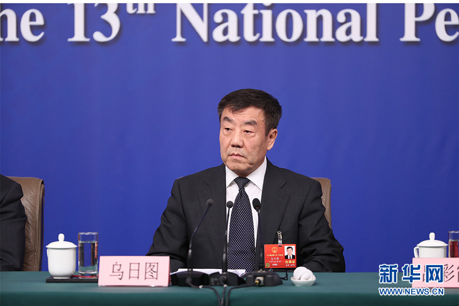 3月12日,十三屆全國人大一次會議新聞中心在梅地亞中心多功能廳舉行記者會,邀請十二屆全國人大內(nèi)司委副主任委員王勝明、財(cái)經(jīng)委副主任委員烏日圖、教科文衛(wèi)委副主任委員吳恒、環(huán)資委委員呂彩霞,全國人大常委會法工委副主任王超英、副主任許安標(biāo)就“人大立法工作”相關(guān)問題回答中外記者提問。圖為財(cái)經(jīng)委副主任委員烏日圖回答記者提問。新華網(wǎng)/中國政府網(wǎng) 翟子赫 攝
