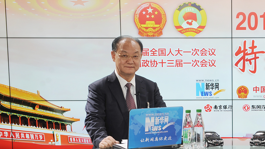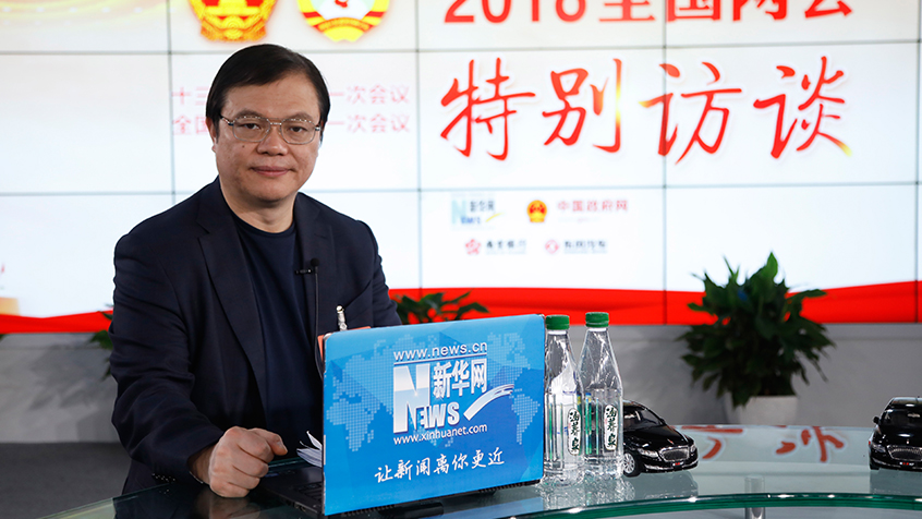 ??????? 全國人大代表、康恩貝集團有限公司董事長胡季強做客新華網(wǎng)2018全國兩會特別訪談 新華網(wǎng) 楊锘攝
