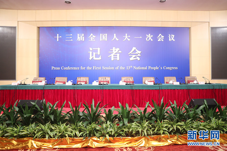 3月12日,十三屆全國(guó)人大一次會(huì)議新聞中心在梅地亞中心多功能廳舉行記者會(huì),邀請(qǐng)十二屆全國(guó)人大內(nèi)司委副主任委員王勝明、財(cái)經(jīng)委副主任委員烏日?qǐng)D、教科文衛(wèi)委副主任委員吳恒、環(huán)資委委員呂彩霞,全國(guó)人大常委會(huì)法工委副主任王超英、副主任許安標(biāo)就“人大立法工作”相關(guān)問題回答中外記者提問。圖為記者會(huì)開始前。新華網(wǎng)/中國(guó)政府網(wǎng) 翟子赫 攝