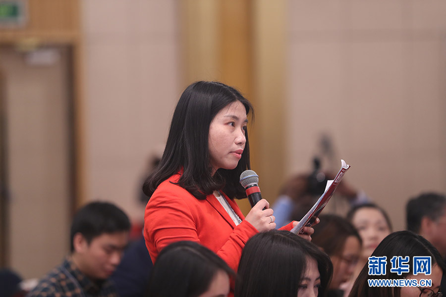 3月12日,十三屆全國人大一次會議新聞中心在梅地亞中心多功能廳舉行記者會,邀請十二屆全國人大內(nèi)司委副主任委員王勝明、財經(jīng)委副主任委員烏日圖、教科文衛(wèi)委副主任委員吳恒、環(huán)資委委員呂彩霞,全國人大常委會法工委副主任王超英、副主任許安標(biāo)就“人大立法工作”相關(guān)問題回答中外記者提問。圖為北京周報社記者提問。新華網(wǎng)/中國政府網(wǎng) 翟子赫 攝