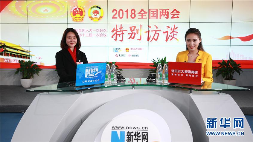 3月13日,全國人大代表、瀘州老窖股份有限公司酒體設(shè)計管理中心副主任曾娜(左)做客新華網(wǎng)2018全國兩會特別訪談。新華網(wǎng) 楊锘攝