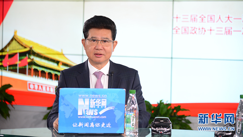 3月14日,全國政協(xié)委員、蘇寧環(huán)球董事長張桂平做客新華網(wǎng)2018全國兩會(huì)特別訪談。新華網(wǎng) 楊濛攝