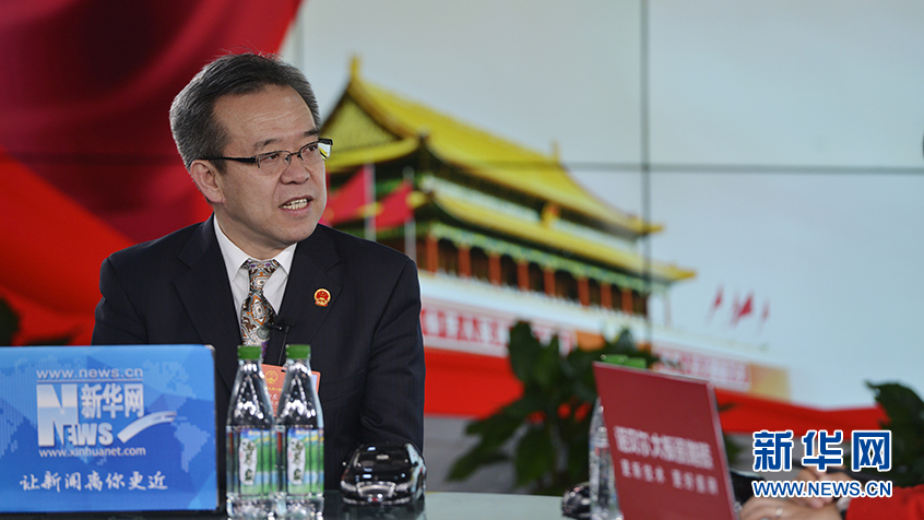 圖為15日,全國(guó)人大代表、甘肅省酒泉市委書(shū)記吳仰東做客新華網(wǎng)2018全國(guó)兩會(huì)特別訪談。新華網(wǎng) 李相博攝