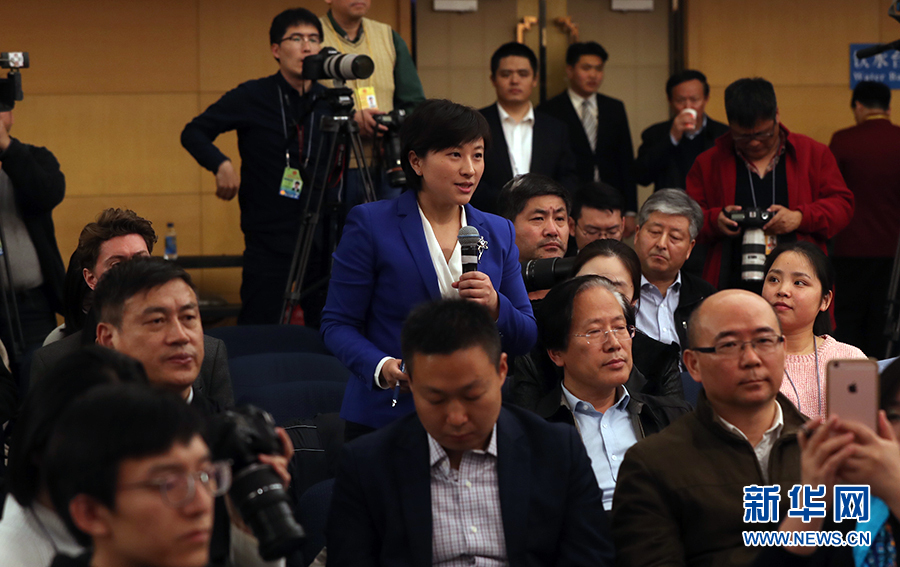 十三屆全國人大一次會(huì)議新聞中心于3月17日15時(shí)在梅地亞中心多功能廳舉行記者會(huì),邀請環(huán)保部部長李干杰就“打好污染防治攻堅(jiān)戰(zhàn)”相關(guān)問題回答中外記者提問。圖為中國國際電視臺(tái)記者提問。新華網(wǎng)/中國政府網(wǎng) 曲植 攝