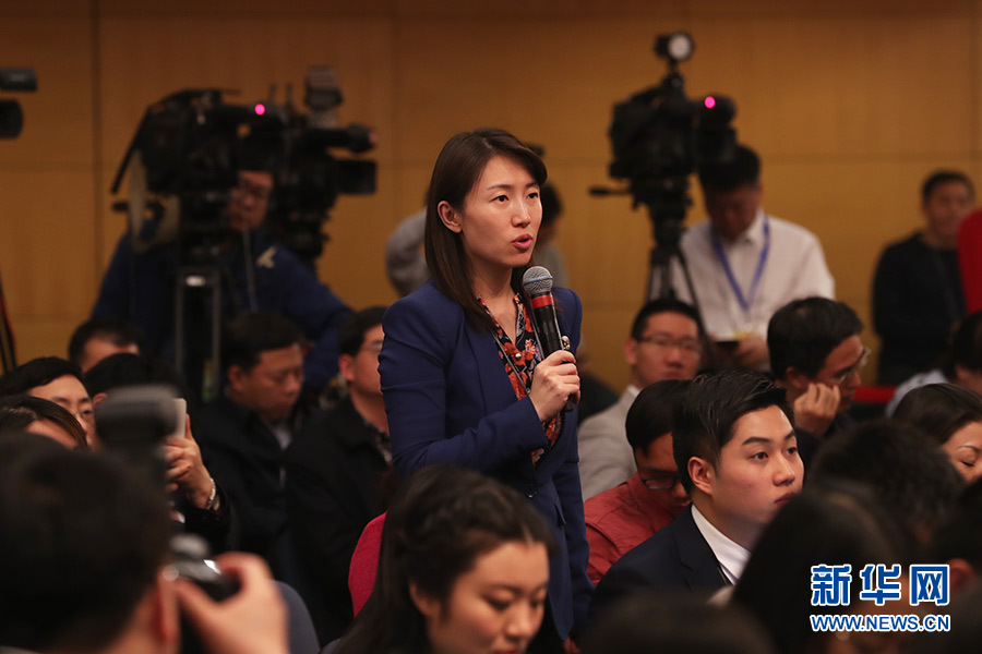十三屆全國人大一次會(huì)議新聞中心3月17日(星期六)15時(shí)在梅地亞中心多功能廳舉行記者會(huì),邀請(qǐng)環(huán)保部部長(zhǎng)李干杰就“打好污染防治攻堅(jiān)戰(zhàn)”相關(guān)問題回答中外記者提問。圖為鳳凰衛(wèi)視記者提問。新華網(wǎng)/中國政府網(wǎng) 曲植 攝