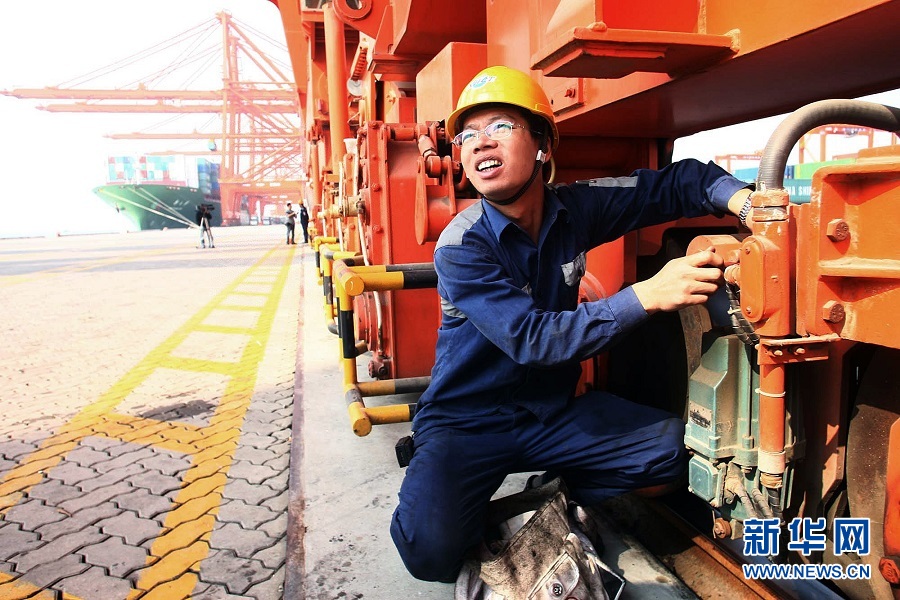 馮鴻昌在檢修港口設備(2007年12月7日攝)。從業(yè)21年,馮鴻昌從一名普通學徒起步,一步步成長為廈門集裝箱碼頭集團有限公司高級技師、全國勞動模范,榮獲中華技能大獎。他的微信頭像里,“匠人匠心”四個字分外顯眼。逐夢征程,需要價值追求的引領和精神力量的支撐。新華社記者 姜克紅 攝