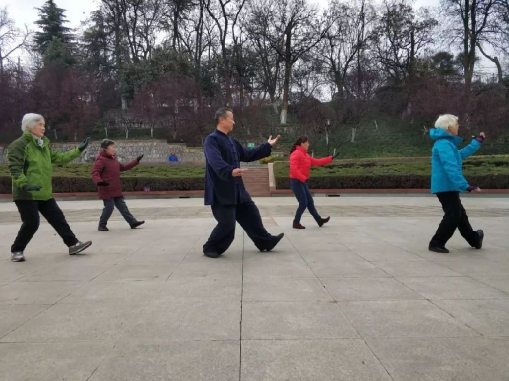 合肥,老人們?cè)诠珗@里打太極拳。新華網(wǎng)發(fā)(楊曉原 攝)