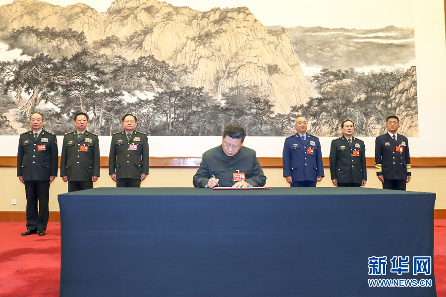 1月4日,中央軍委軍事工作會議在北京召開。中共中央總書記、國家主席、中央軍委主席習近平出席會議并發(fā)表重要講話。這是習近平簽署中央軍委2019年1號命令,向全軍發(fā)布開訓動員令。 新華社記者 李剛 攝