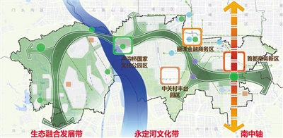 記者梳理發(fā)現(xiàn),各區(qū)的空間布局多以軸、帶、區(qū)、點(diǎn)等來(lái)規(guī)劃和定位。例如,豐臺(tái)區(qū)空間布局為一軸、兩帶、四區(qū)和多點(diǎn)。其中,一軸指南中軸豐臺(tái)段,規(guī)劃指出這一軸將帶動(dòng)城市南部地區(qū)發(fā)展的生態(tài)文化發(fā)展軸,獨(dú)具魅力的未來(lái)軸線(xiàn)、騰飛舞臺(tái)。