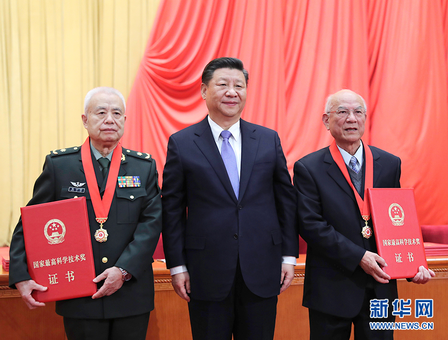 1月8日,2018年度國家科學(xué)技術(shù)獎勵大會在北京人民大會堂隆重舉行。這是習(xí)近平等黨和國家領(lǐng)導(dǎo)人同獲得2018年度國家最高科學(xué)技術(shù)獎的哈爾濱工業(yè)大學(xué)劉永坦院士和中國人民解放軍陸軍工程大學(xué)錢七虎院士一道,為獲得國家自然科學(xué)獎、國家技術(shù)發(fā)明獎、國家科學(xué)技術(shù)進(jìn)步獎和中華人民共和國國際科學(xué)技術(shù)合作獎的代表頒發(fā)證書。 新華社記者 鞠鵬 攝
