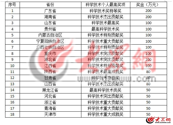 盤點(diǎn)各省科技最高獎金額 讓獲獎人全部支配獎金的不多見