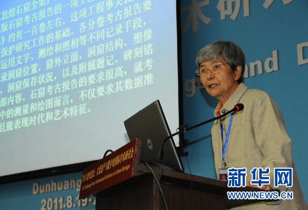 2011年8月19日,在敦煌莫高窟舉行的文化遺產(chǎn)與數(shù)字化國際學(xué)術(shù)研討會上,敦煌研究院院長樊錦詩在作報告。? 新華社發(fā)