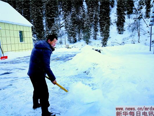 觀測(cè)員王海存在積雪雪崩研究站清雪。李曉玲攝