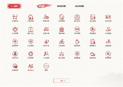 北京市政務(wù)服務(wù)網(wǎng)個人服務(wù)項按主題分類。網(wǎng)絡(luò)截圖