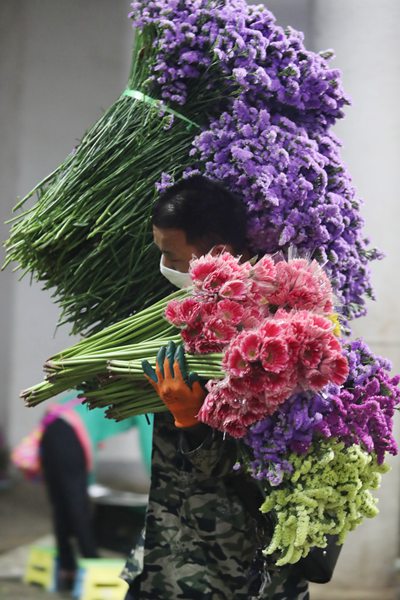 “拍花的時候心都要跳出來了,特別有好品種出現(xiàn)時,你不能耽誤,耽誤幾秒鐘花就不見了?!痹谂馁u市場做了16年購買商的李雯碧,18歲就到斗南買花再販賣到昆明去賣,20多年來,她的鮮切花批發(fā)生意越做越大。有一段時間,她專門為人民大會堂供花。