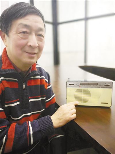 張明律展示美多28A收音機(jī)。記者田泓攝