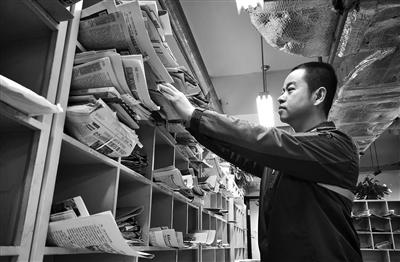 每天一上班,陳龍先將各類報(bào)刊和信件進(jìn)行整理 攝影/本報(bào)記者 柴程