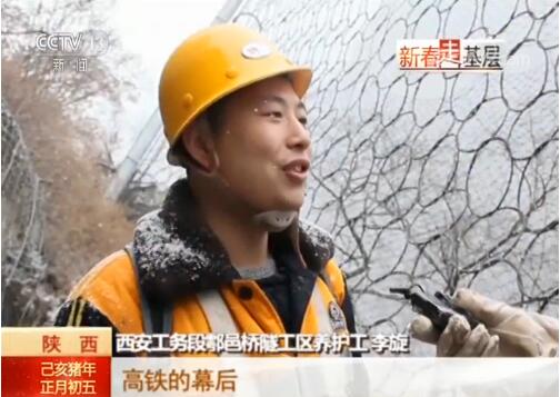掃山小組 李旋:高鐵的幕后,還有好多像我們這樣(默默無聞)的人,看著這一條(西成高鐵)線,源源(不斷)地輸送著旅客,春節(jié)一趟接著一趟,其實想想這背后也有我的一份功勞。