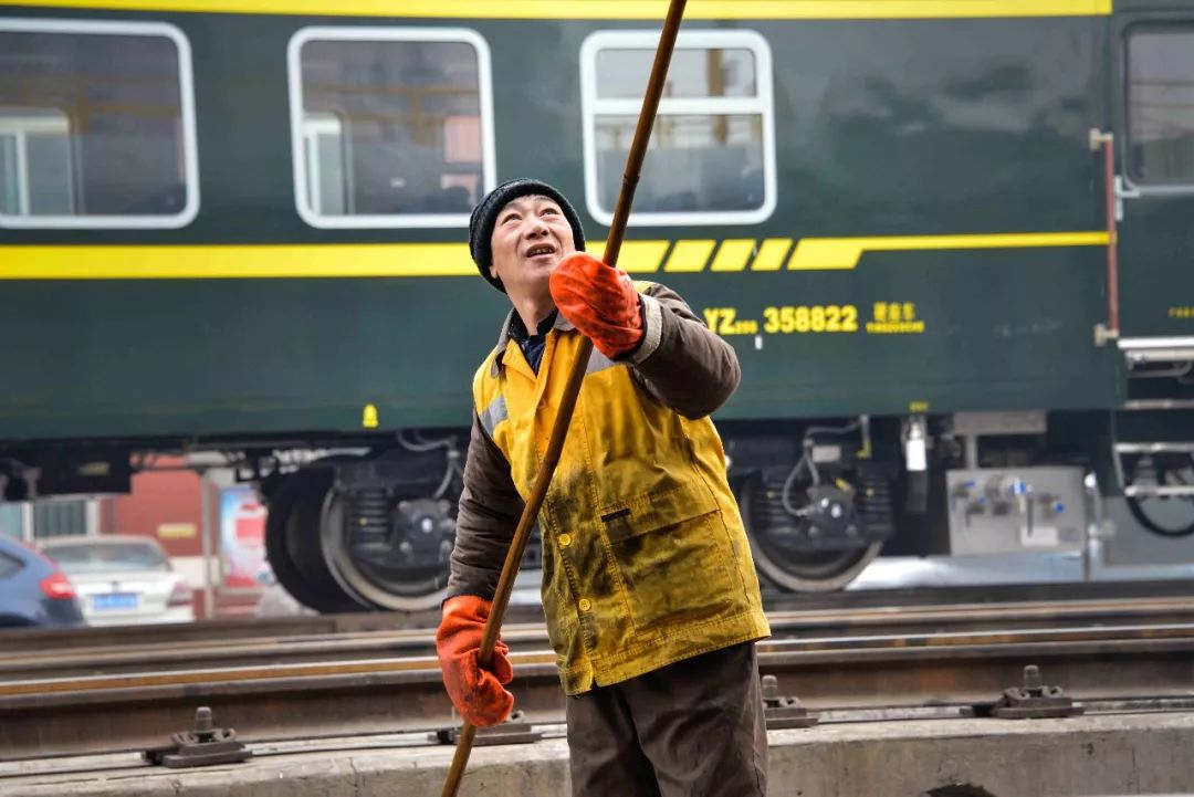 2019-02-01,河南鄭州火車站?!板N叔”鄭獻(xiàn)敏是鄭州車輛段的職工,38年來(lái),他忙碌于站臺(tái)上,穿梭于股道間,用一把小小的檢車錘確保著南來(lái)北往的旅客的乘車安全。作者:趙慶