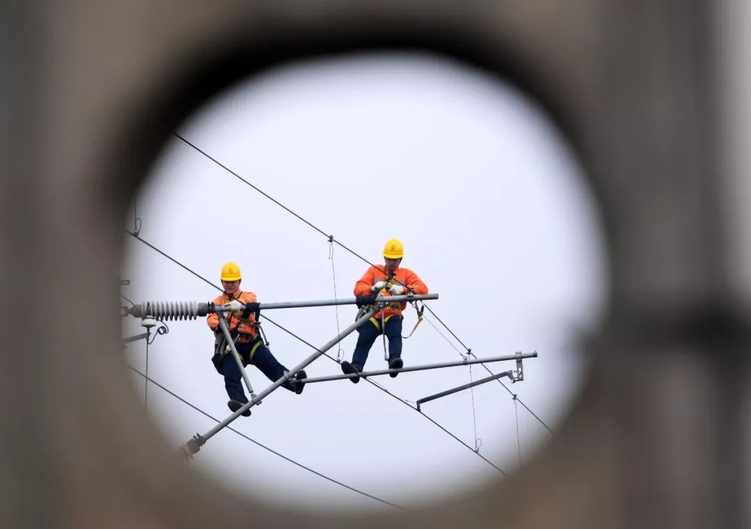 2019-02-06,江西九江。中國(guó)鐵路南昌局集團(tuán)有限公司南昌供電段的職工在武九鐵路瑞昌區(qū)段檢修保養(yǎng)接觸網(wǎng)設(shè)備,以迎接節(jié)后鐵路運(yùn)輸高峰。作者:江山如畫(huà)
