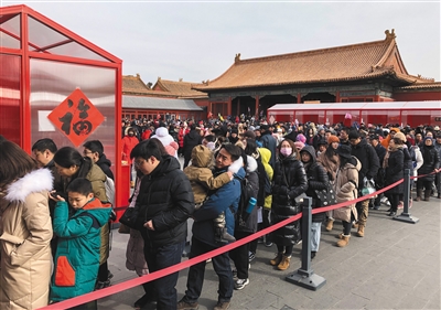 昨日,故宮,游客排隊參觀“中華老字號故宮過大年展”。新京報記者 浦峰 攝