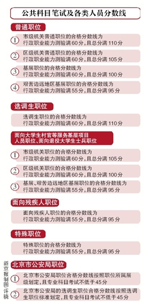 1 市級(jí)機(jī)關(guān)普通職位的合格分?jǐn)?shù)線為:行政職業(yè)能力測驗(yàn)滿60分,且總分滿110分